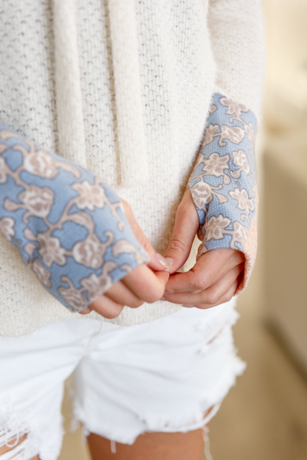 Stay cozy and cute with our A Tad Chilly Waffle Knit Hoodie. Made with soft and lightweight waffle knit, this hoodie features playful floral accents, a cozy hood, and a unique scooped hem. Plus, keep your hands warm with the trendy thumb holes. Perfect for chilly days!