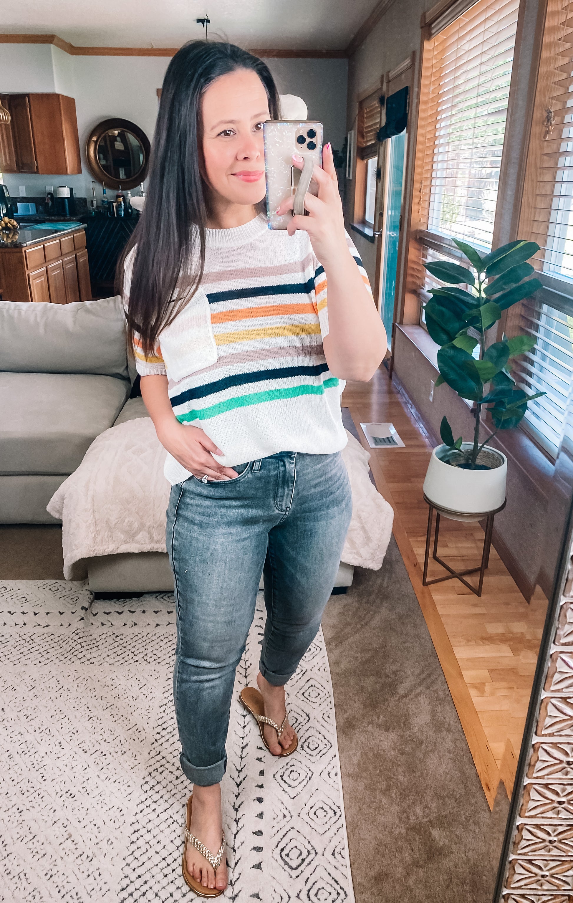 New to Odd sizing: Take your even size and subtract 1 to find your True to Size (TTS). If you're in-between two even sizes, take the middle size for your TTS. Then, from your TTS, size down 1 or stay TTS depending on what we recommend in the fit. Example: I'm a size 8. So my TTS is a 7. I typically size down 1 to a 5 for my regular Judy Blue Size. Curvy sizes take your department store size and size down 1. That is your True to Size (TTS). So if you're an 18w at a department store, you are a 16W in Judy Blue.