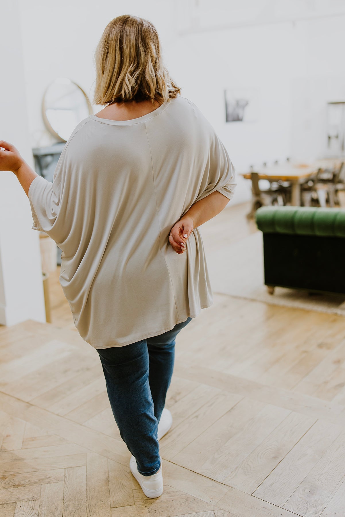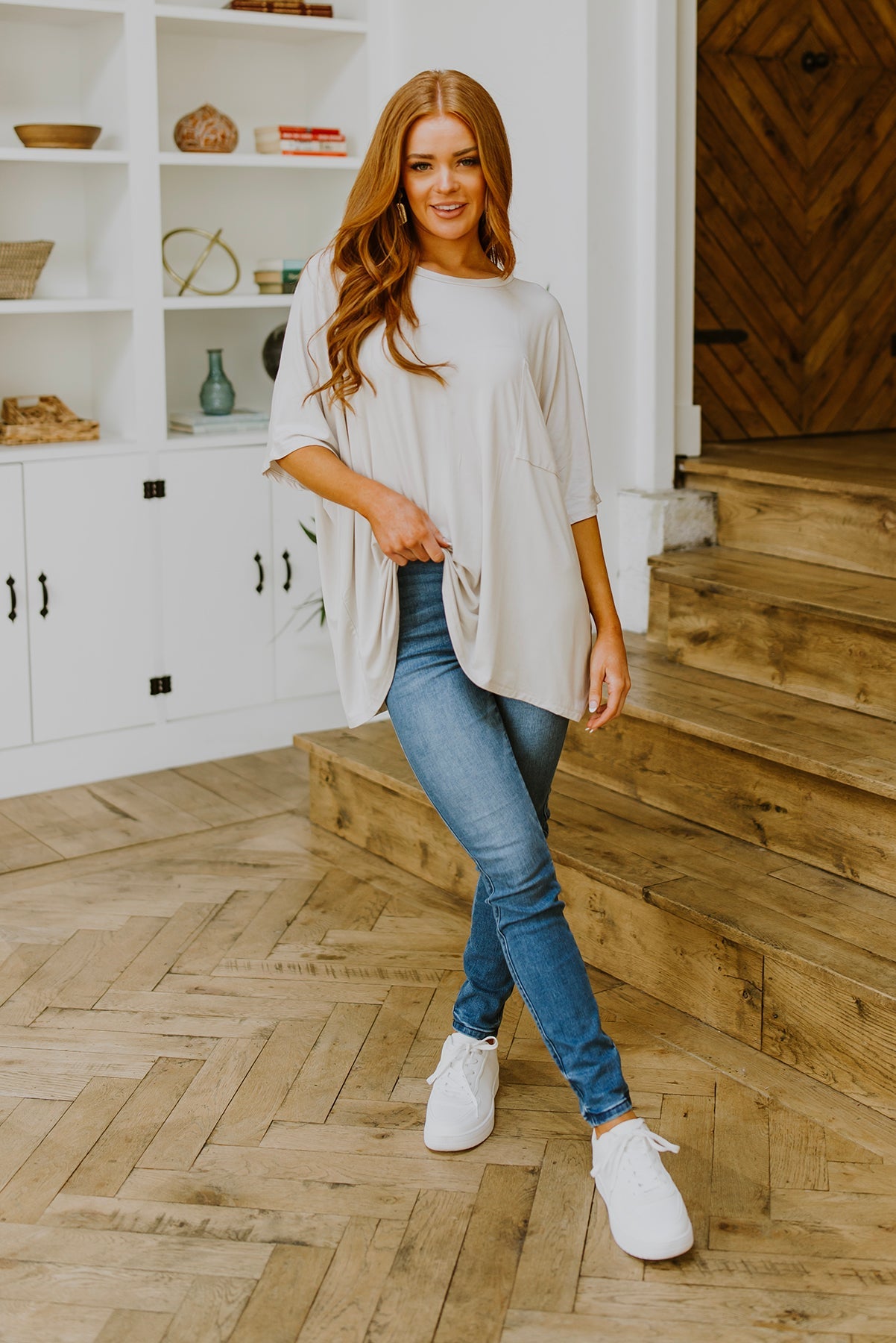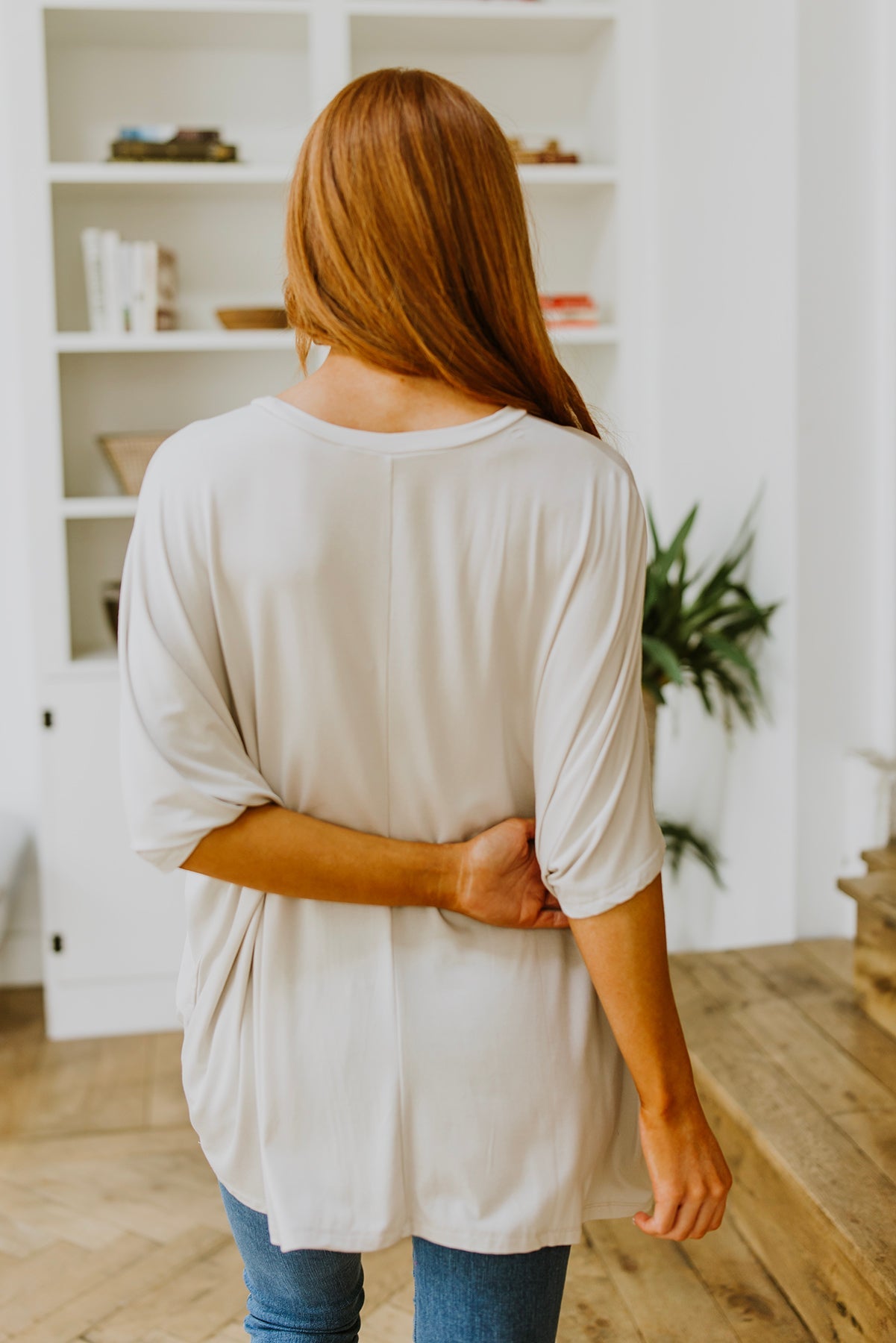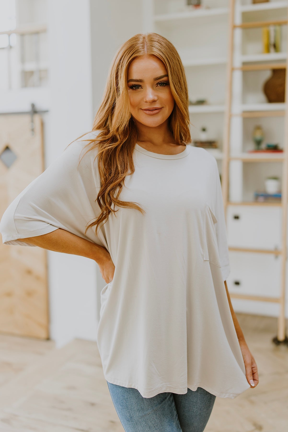 Effortlessly elevate your casual wardrobe with the Effortless Looks Oversized T-Shirt! Made from soft rayon jersey knit, this t-shirt features an oversized fit, dolman sleeves, and a patch pocket for a relaxed yet stylish look. Perfect for lazy days or running errands, this t-shirt is a must-have for any effortless fashionista!