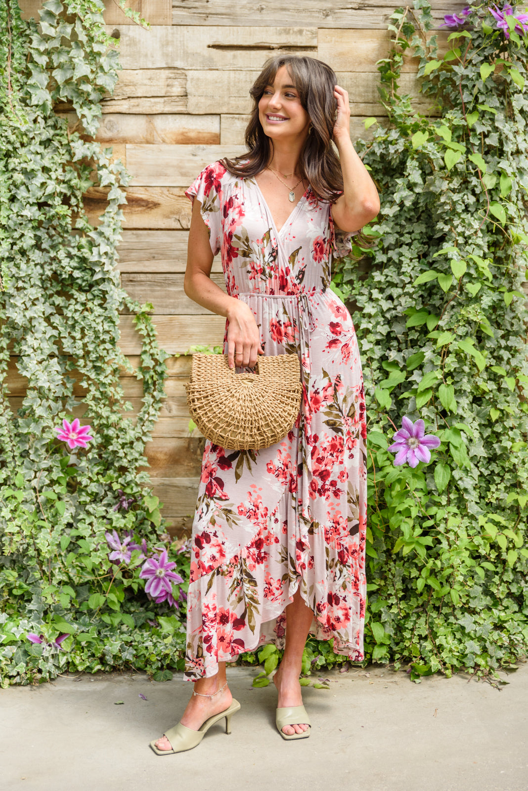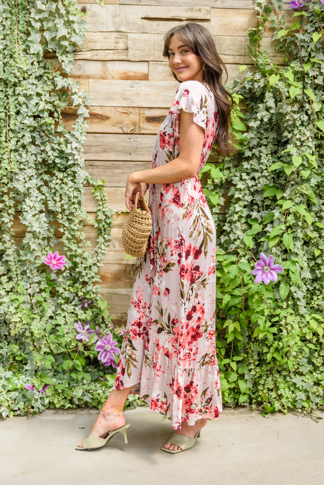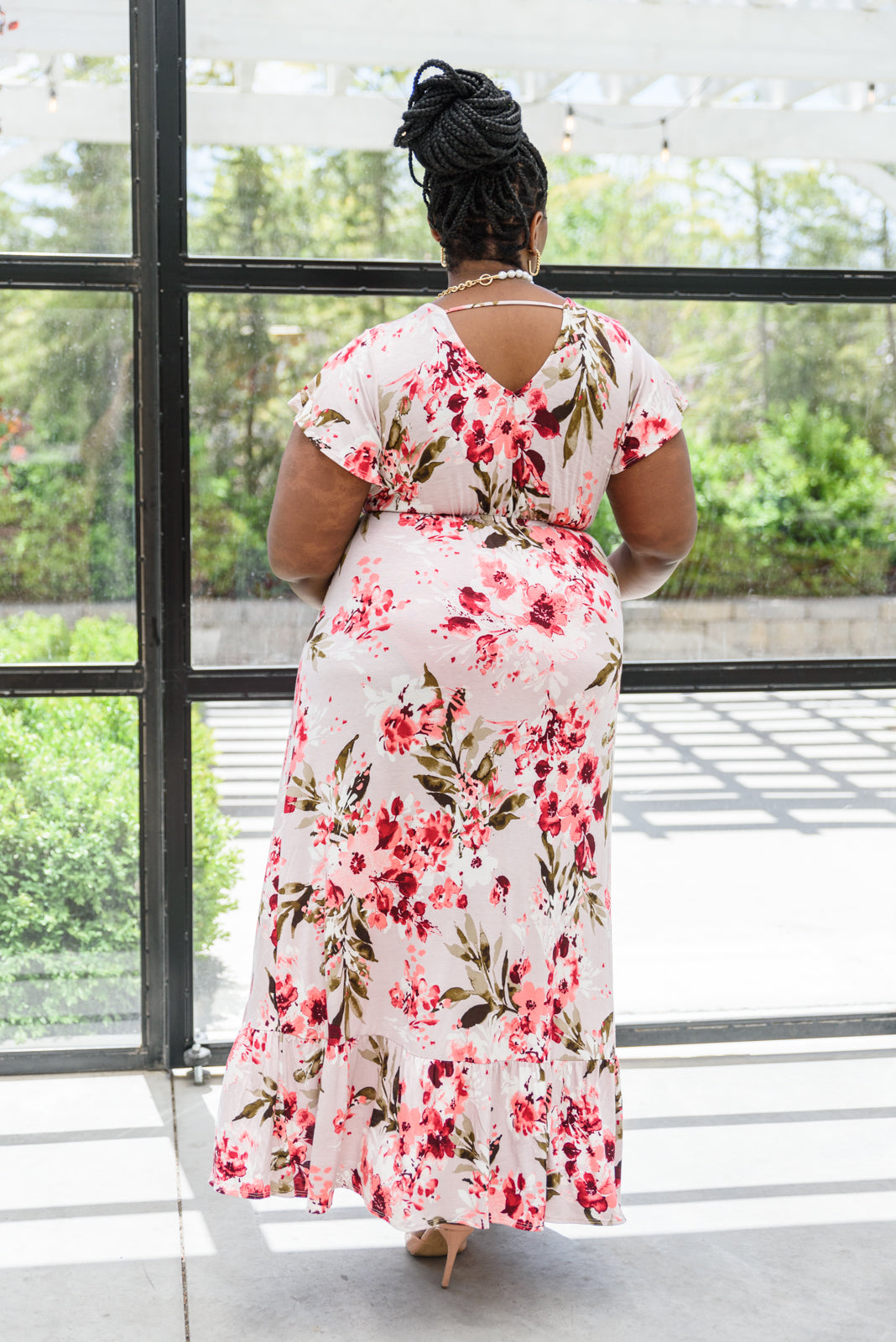 Win them over every time in the Endless Floral Maxi Dress! This stunning wrap style dress is painted in a pink and green floral print, creating a girly chic vibe that's perfect for date night! With a ruffle hem, elastic waist with decorative tie, and maxi silhouette, you're going to fall in love!
