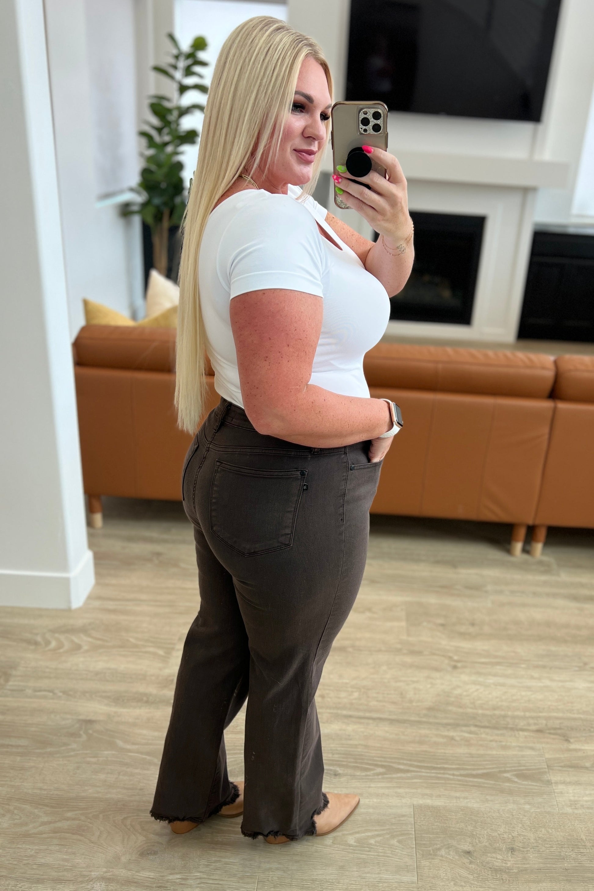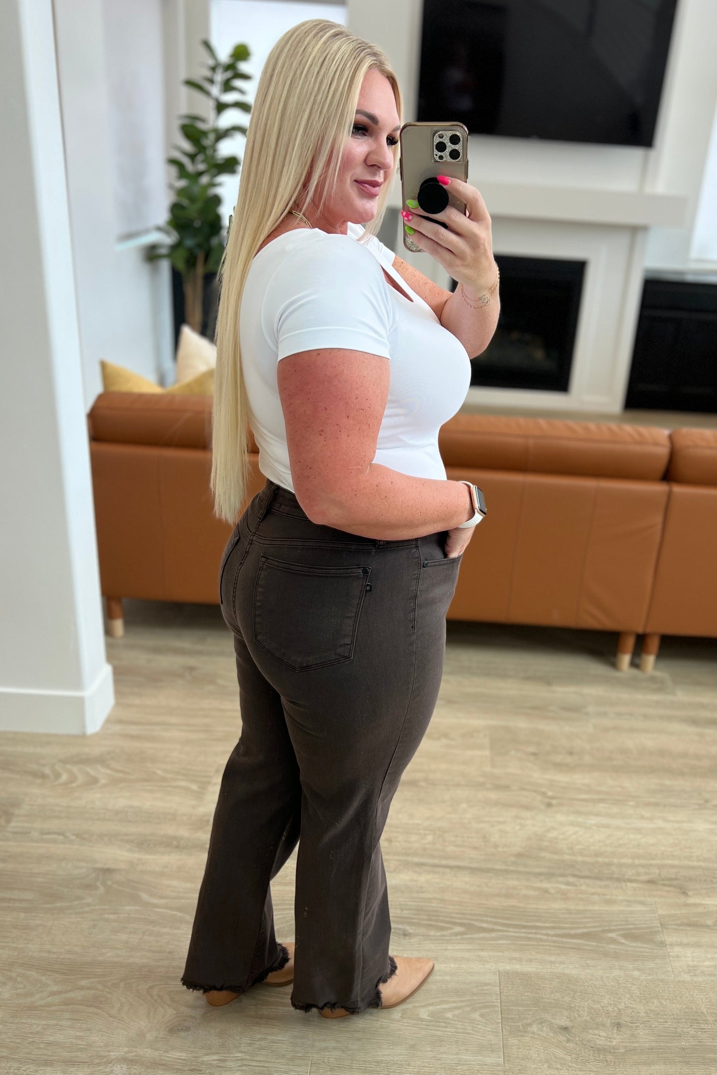 Judy Blue High Rise Frayed Hem 90's Straight Jeans in Brown
