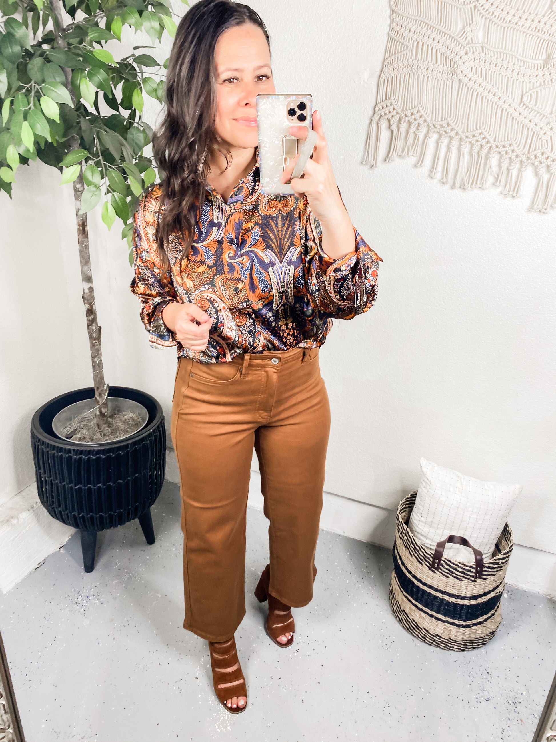 Judy Blue High Rise Tummy Control Wide Leg Crop Jeans in Camel