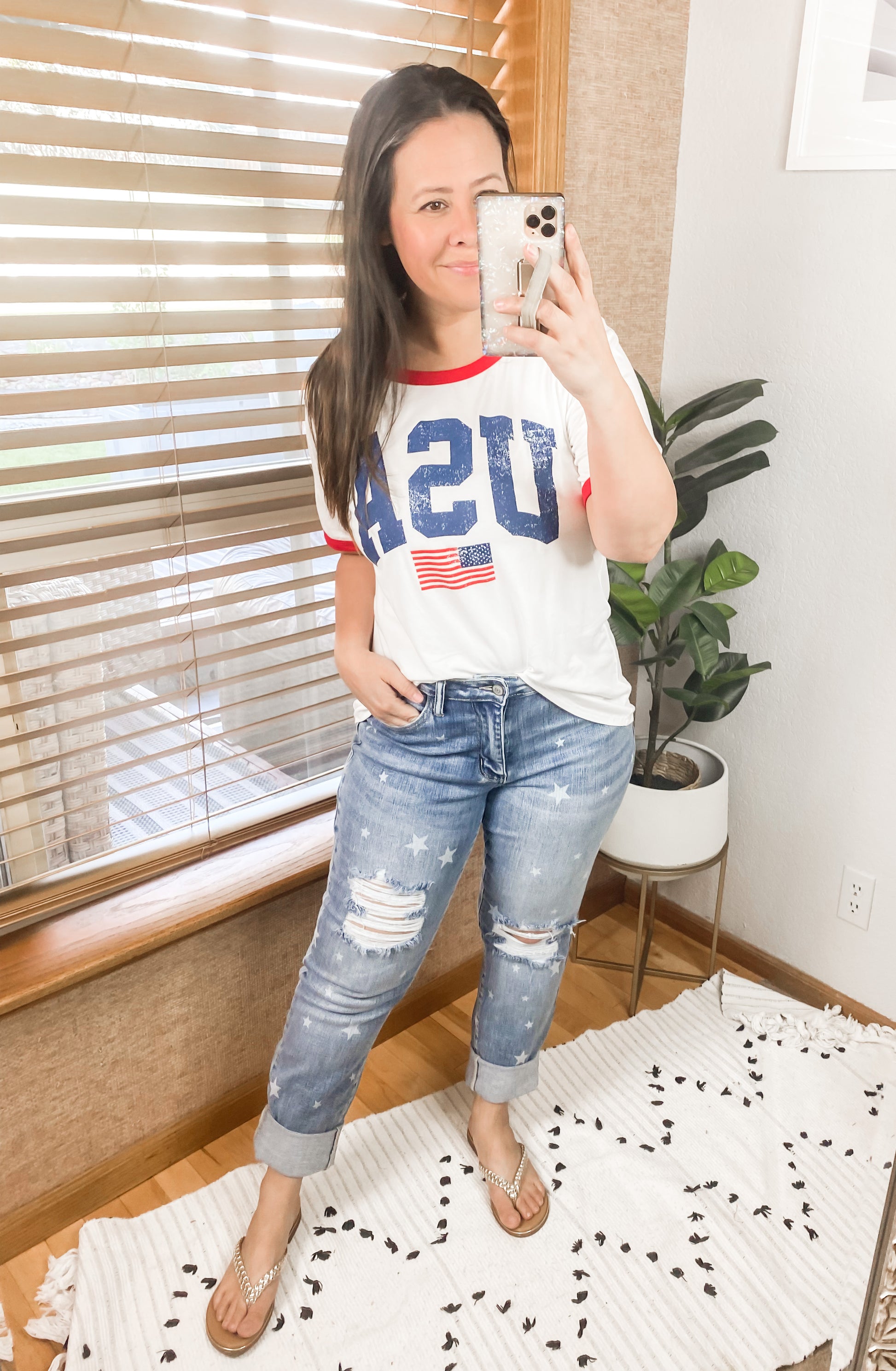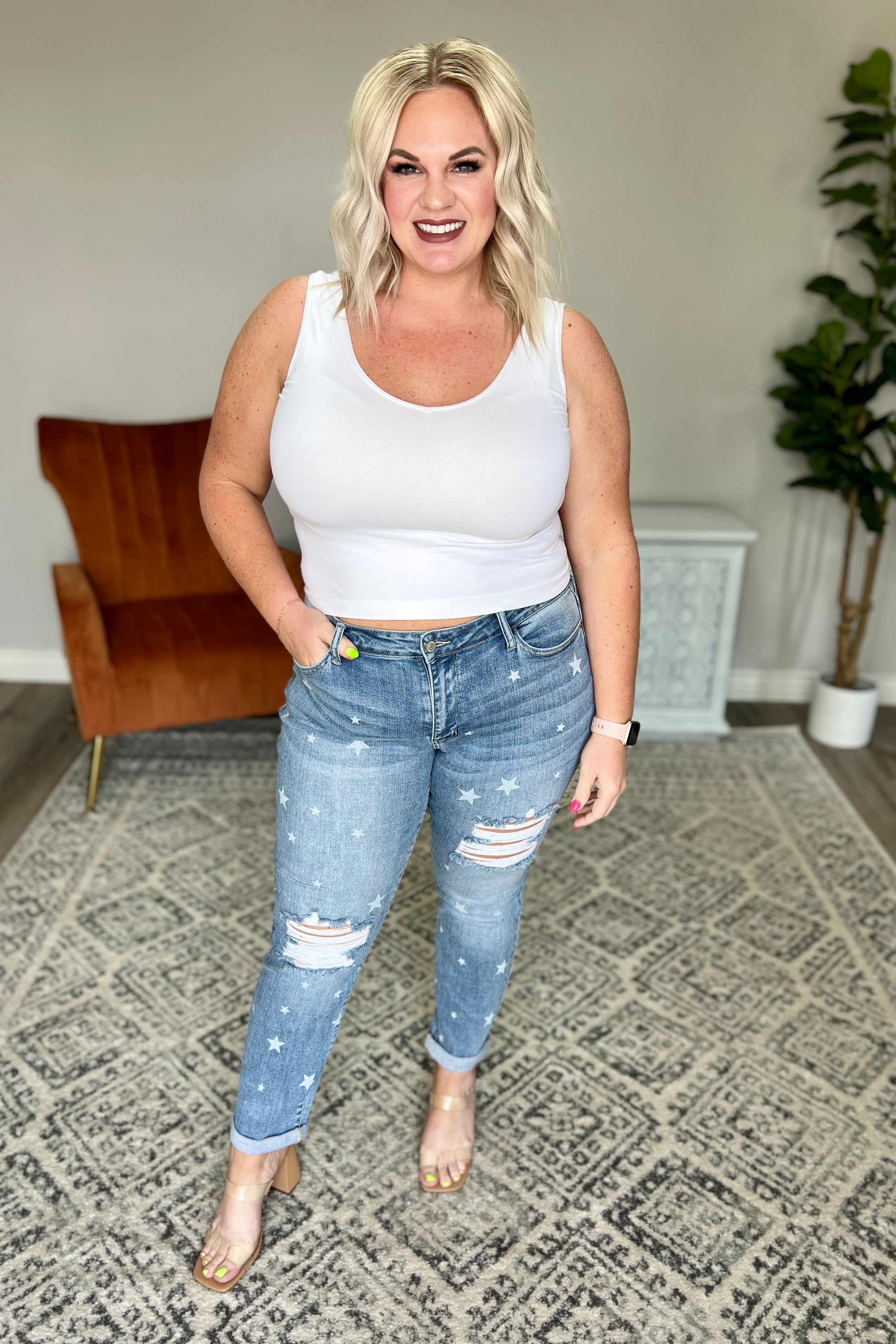 Let your style shine with these Judy Blue Star Crossed Boyfriend Jeans. Featuring a mid-rise, subtle star pattern, and light wash denim, these jeans offer a relaxed, stylish fit with the perfect amount of distressing. Look casually chic every day in these unique and comfortable jeans.