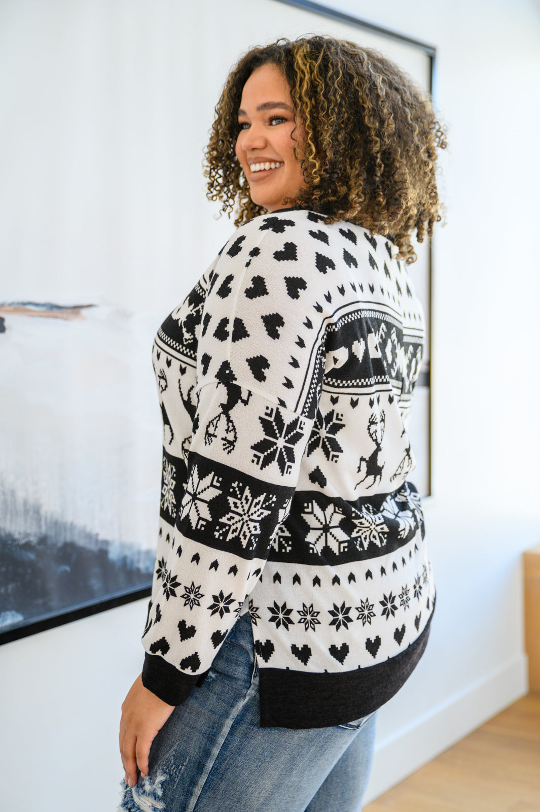The Love And The Holidays V-Neck Top is essential for your holiday wardrobe! This cute sweater features a lightweight, stretchy knit that shapes a v-neckline, with drop shoulder long sleeves and a straight cut-loose fit bodice. The adorable holiday heart print will put you in the Christmas spirit!