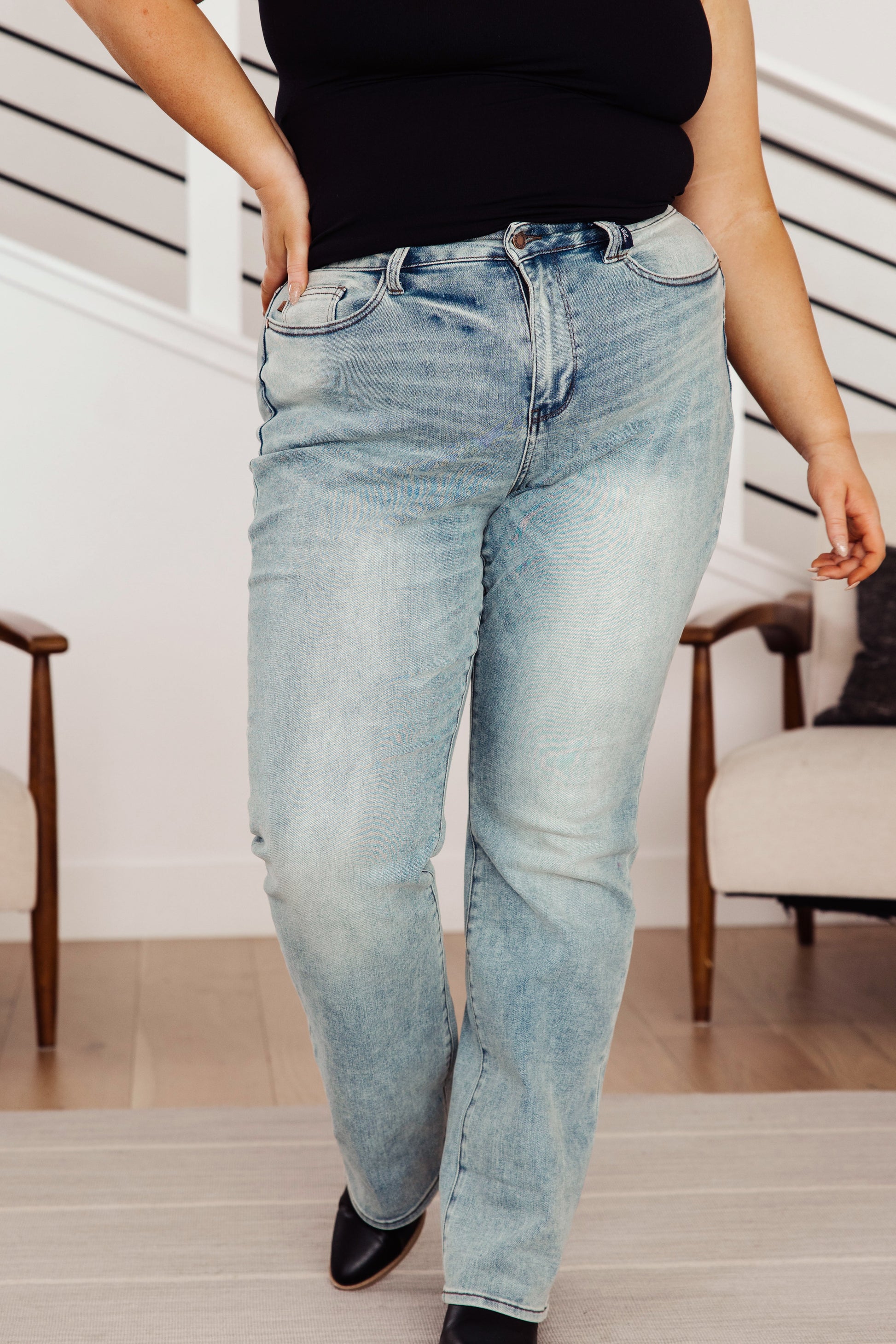 Judy Blue High Rise Plaid Cuff Vintage Straight Jeans