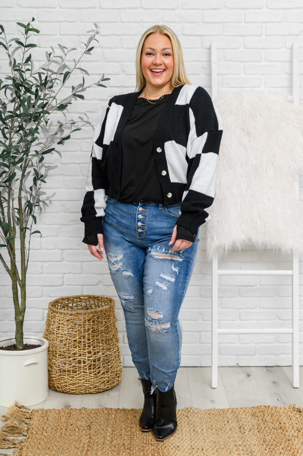 Model Jordan is wearing size 1XL
