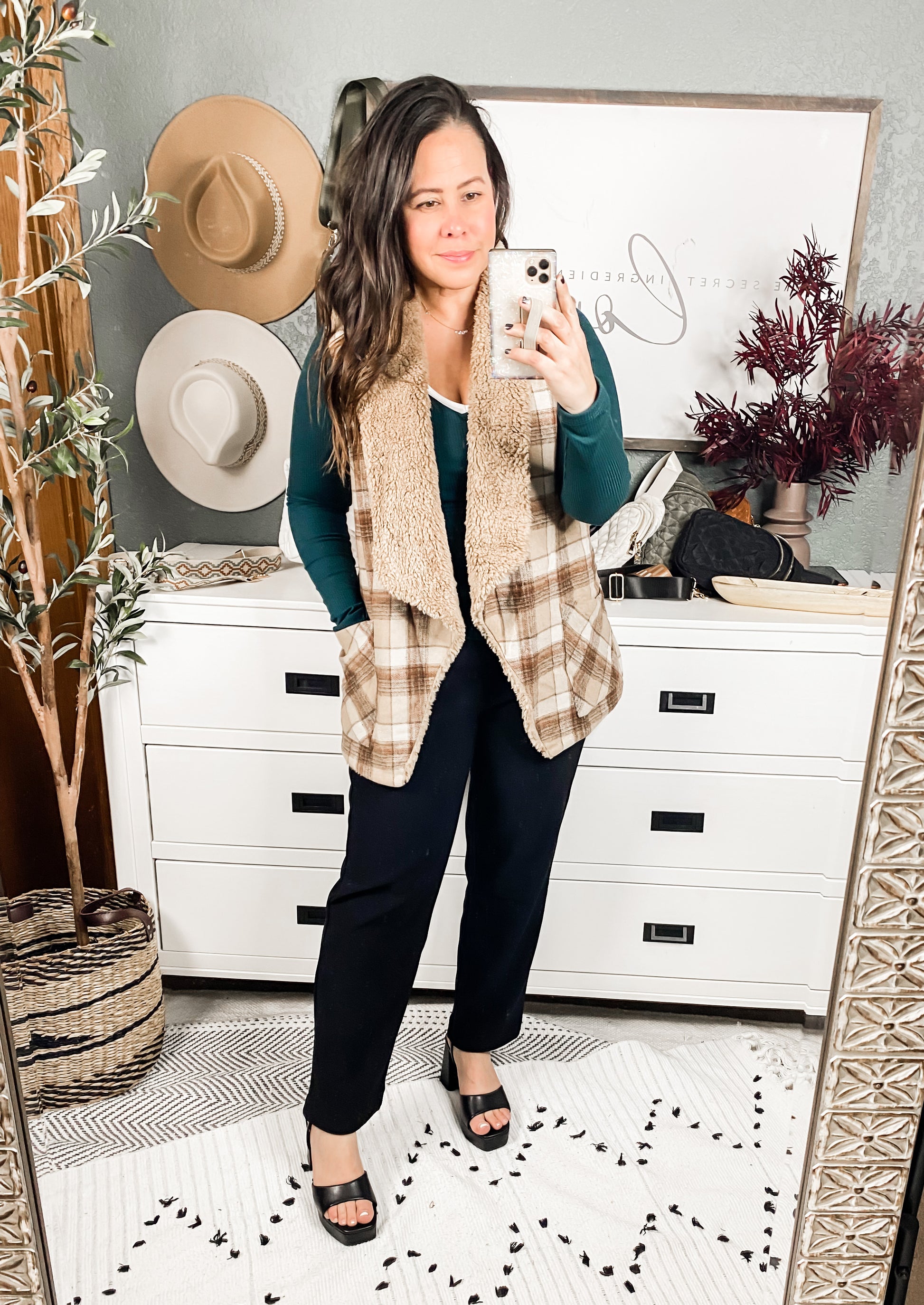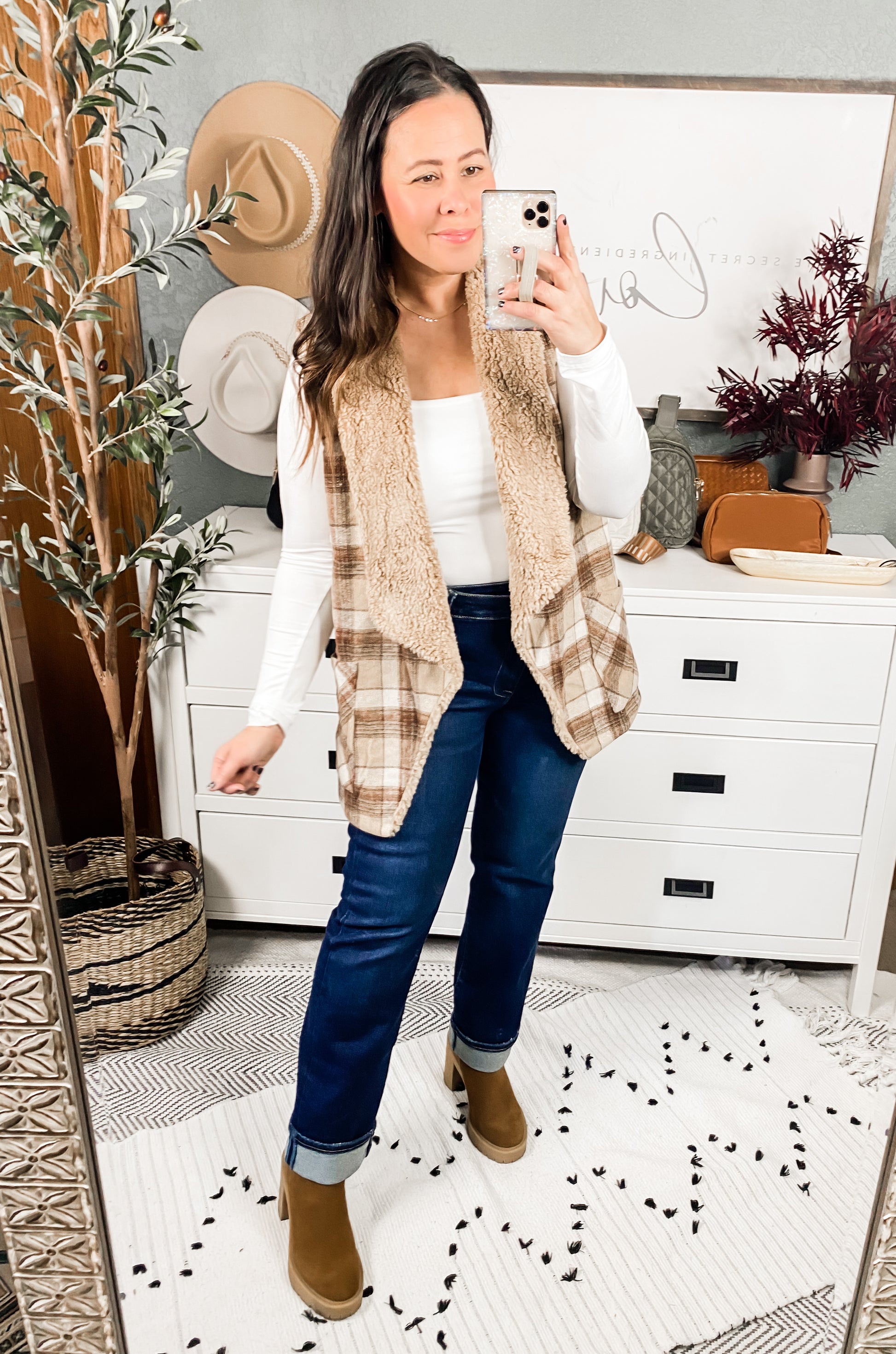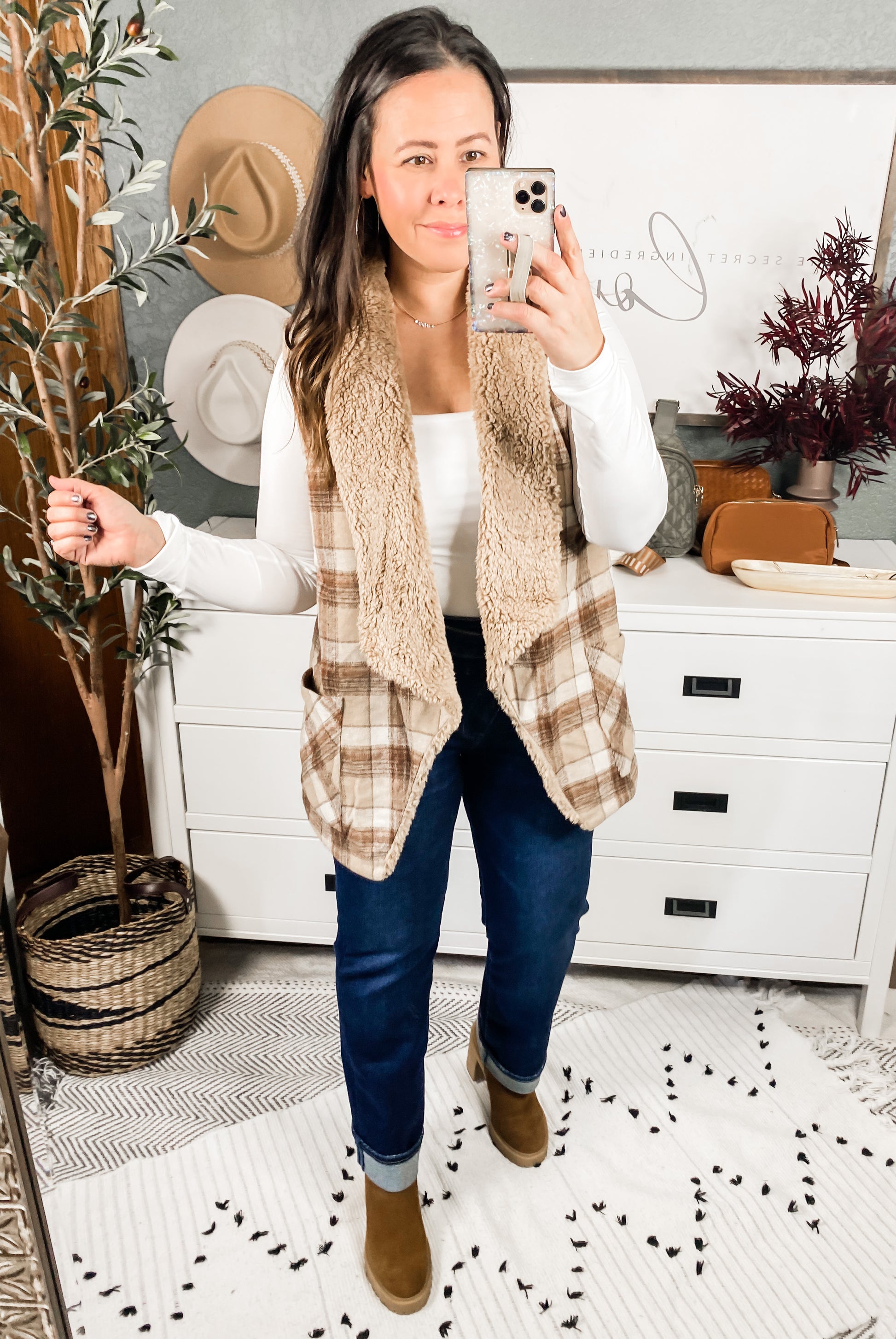 A crisp autumn morning calls for the Snug And Stylish Plaid Fur Lined Wide Collar Vest! This darling vest will get lots of use this season and will pair well over dresses, blouses, turtlenecks and more! Featuring a drapey open front with two front patch pockets. Decorated in an adorable plaid print and lined in a faux fur making this vest chic and on trend!