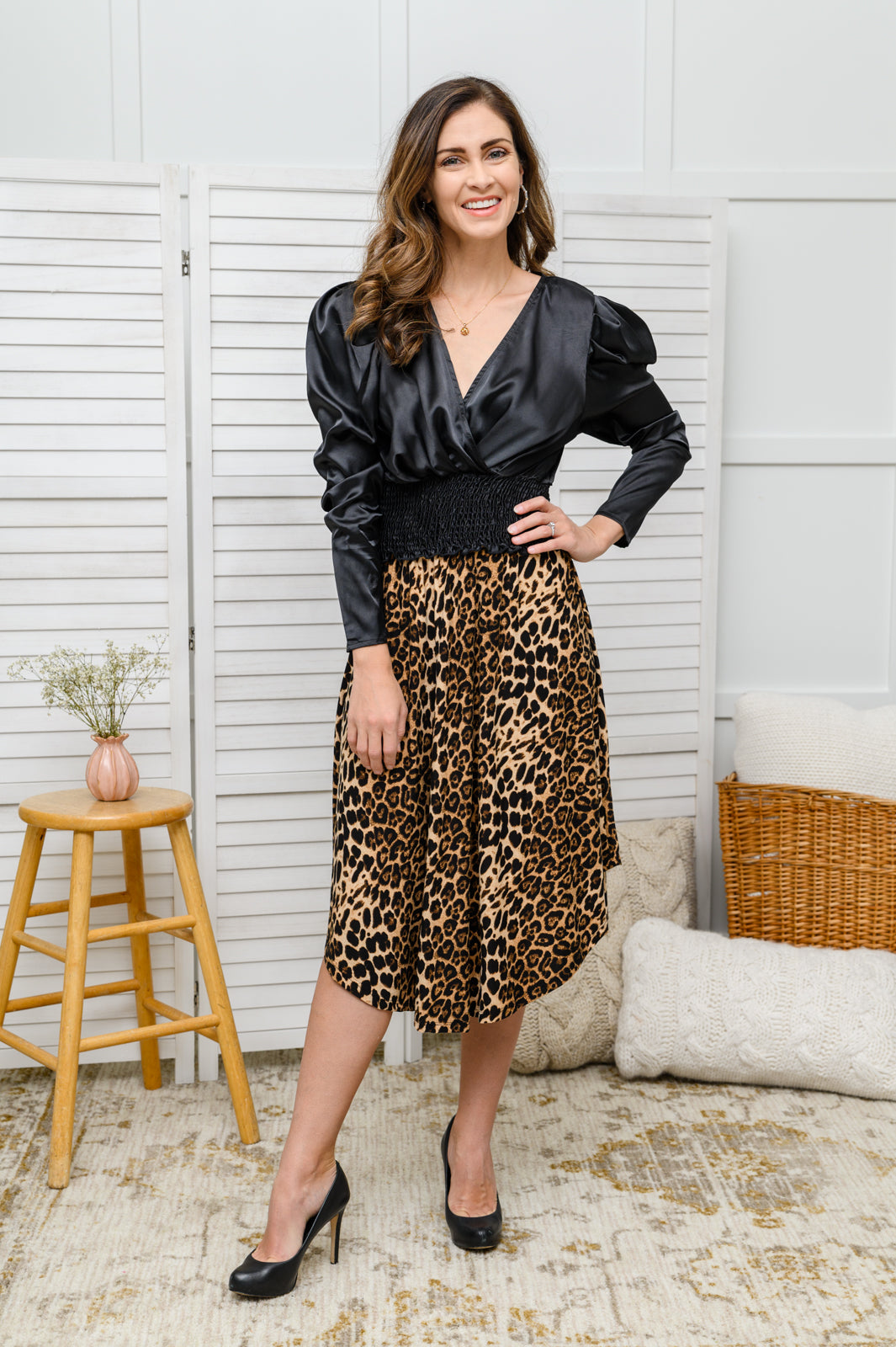 Walk the streets with elegance in the Voulez-Vous Smocked Waist Top In Black! Stunning black satin shapes a surplice neckline with a smocked waist band and puff shoulder long sleeves. Slightly cropped fit.