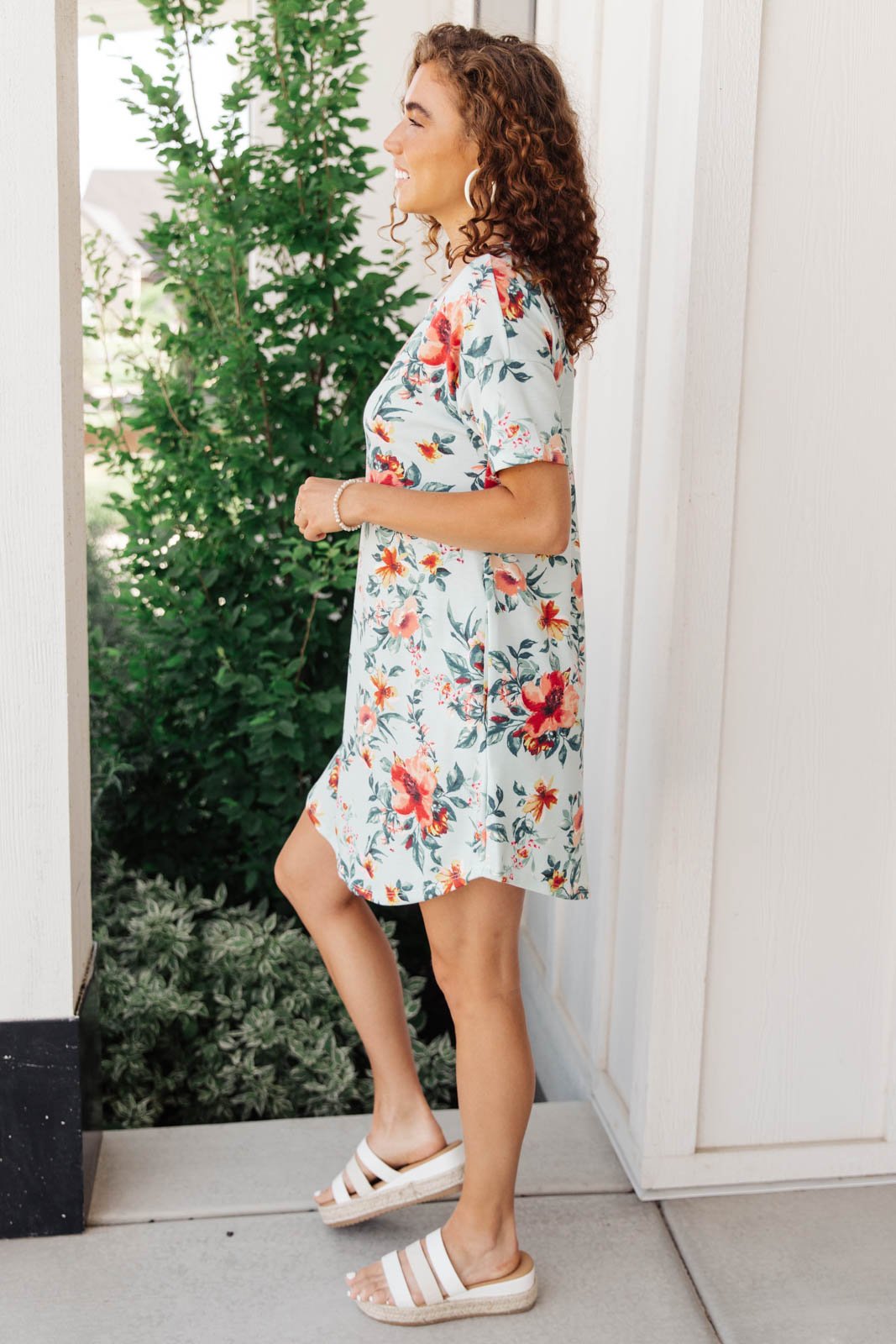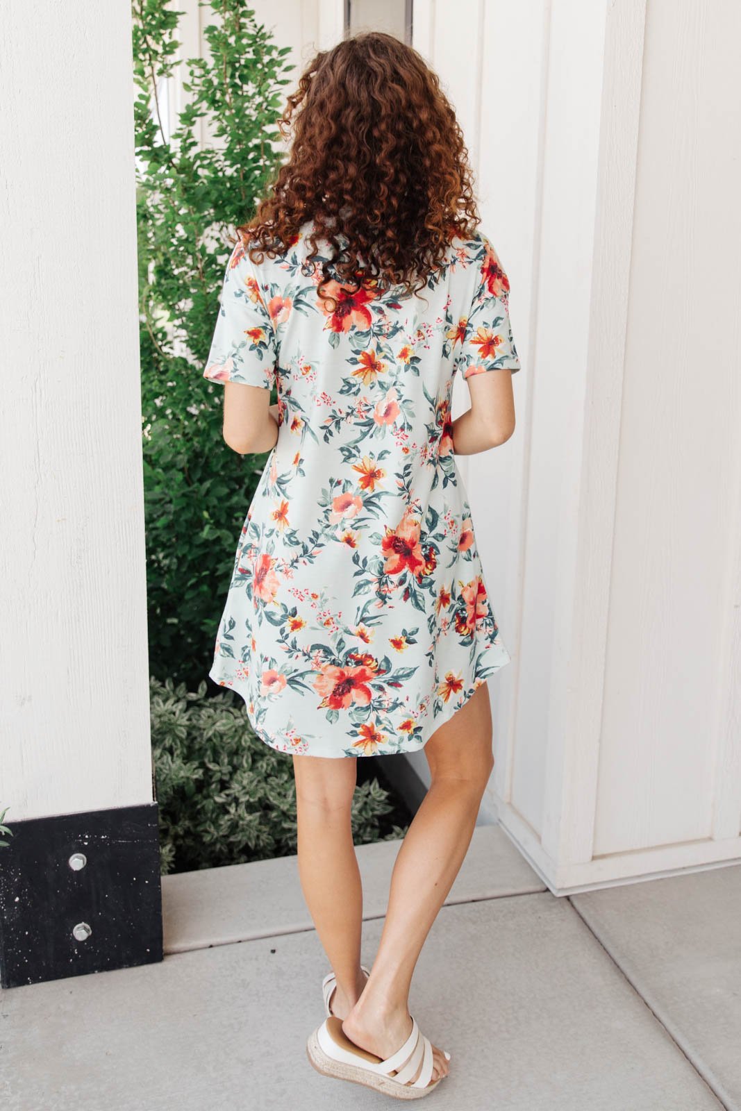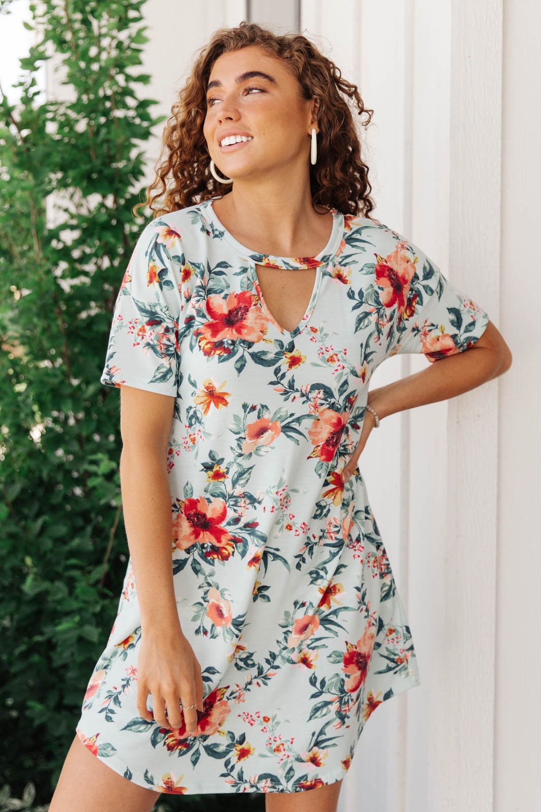The Watercolor Blossoms Dress brings an artistic twist to a comfy t-shirt dress. This dress features beautiful blossoms and a cutout v neckline. Pair this dress with some cute flats or sneakers for a laid back look.