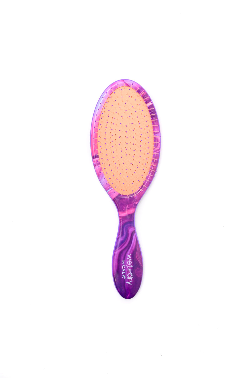 The CALA Wet Dry Brush in Lavender Marble is ideal for all hair types, wet or dry. This brush adds shine and smooths hair while gently massaging and stimulating the scalp. Soft, flexible bristles are great for detangling hair with less snagging and breakage. The oval shape and soft, polymer handle makes the brush easy to hold, allowing effortless styling.