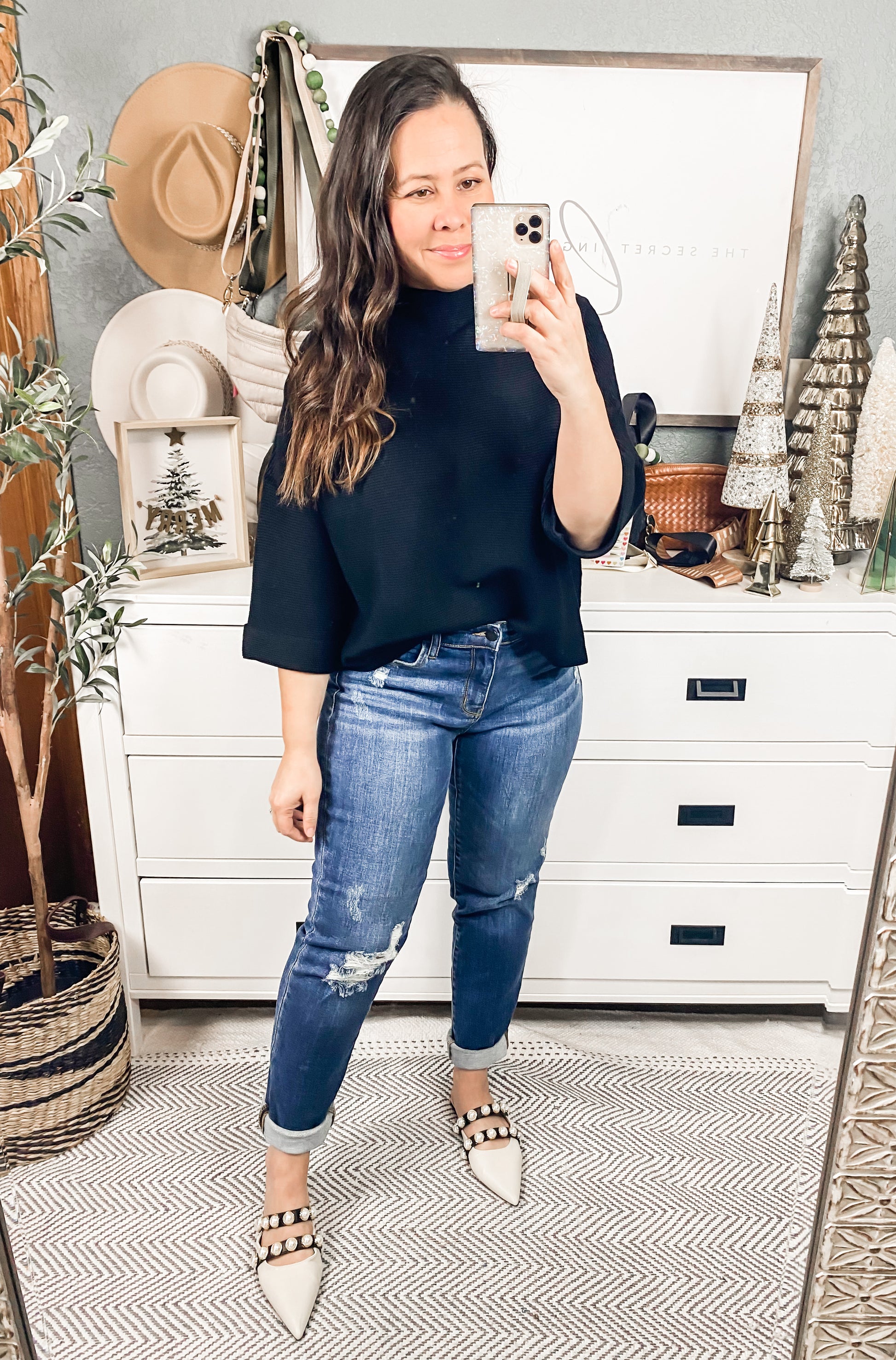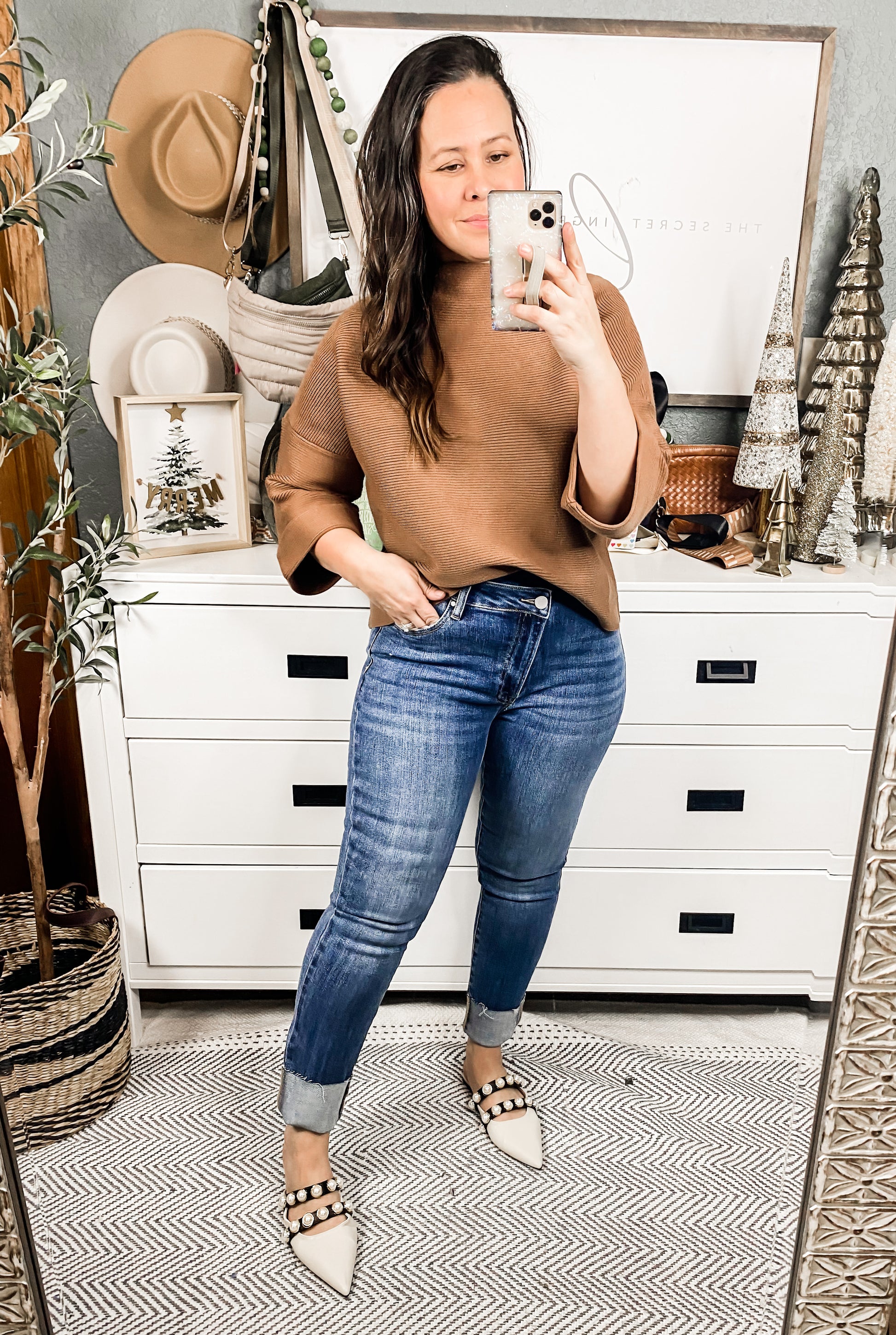 Details: Cuffed Sleeve, Slight Boxy Fit, Medium Weight Ribbed Sweater Knit